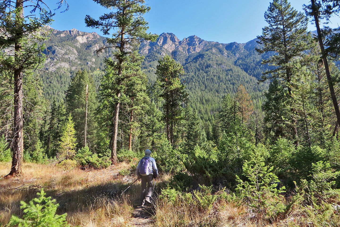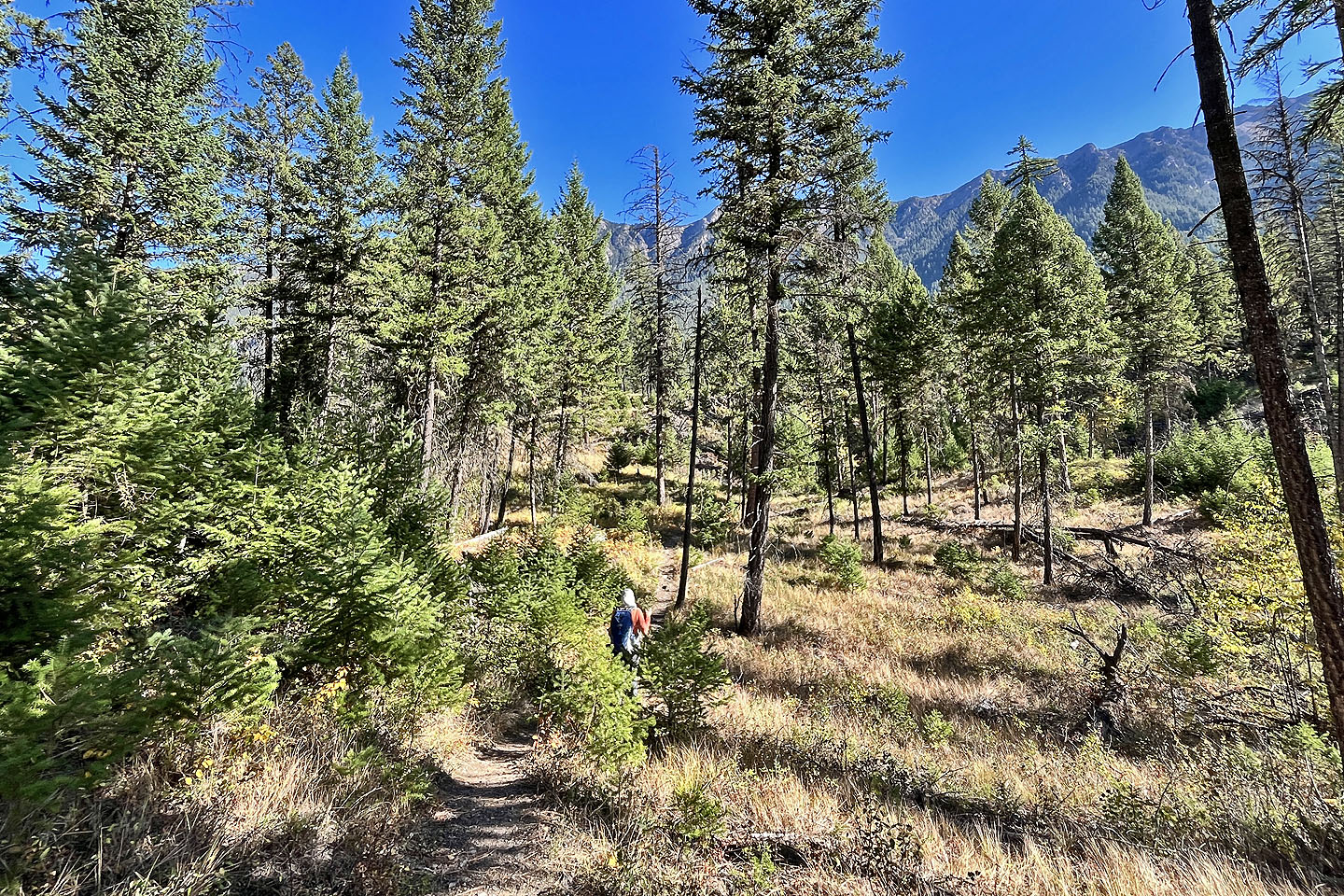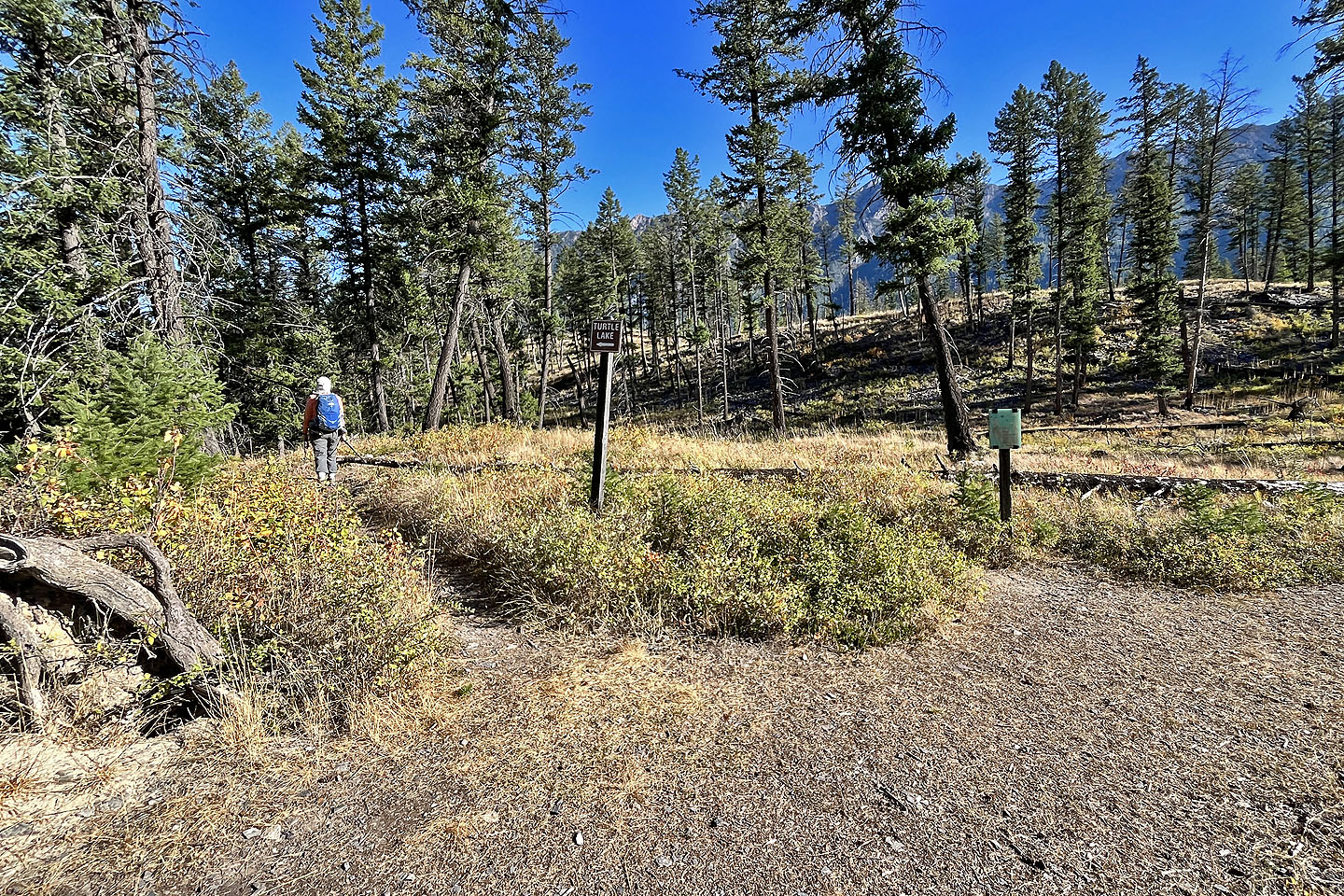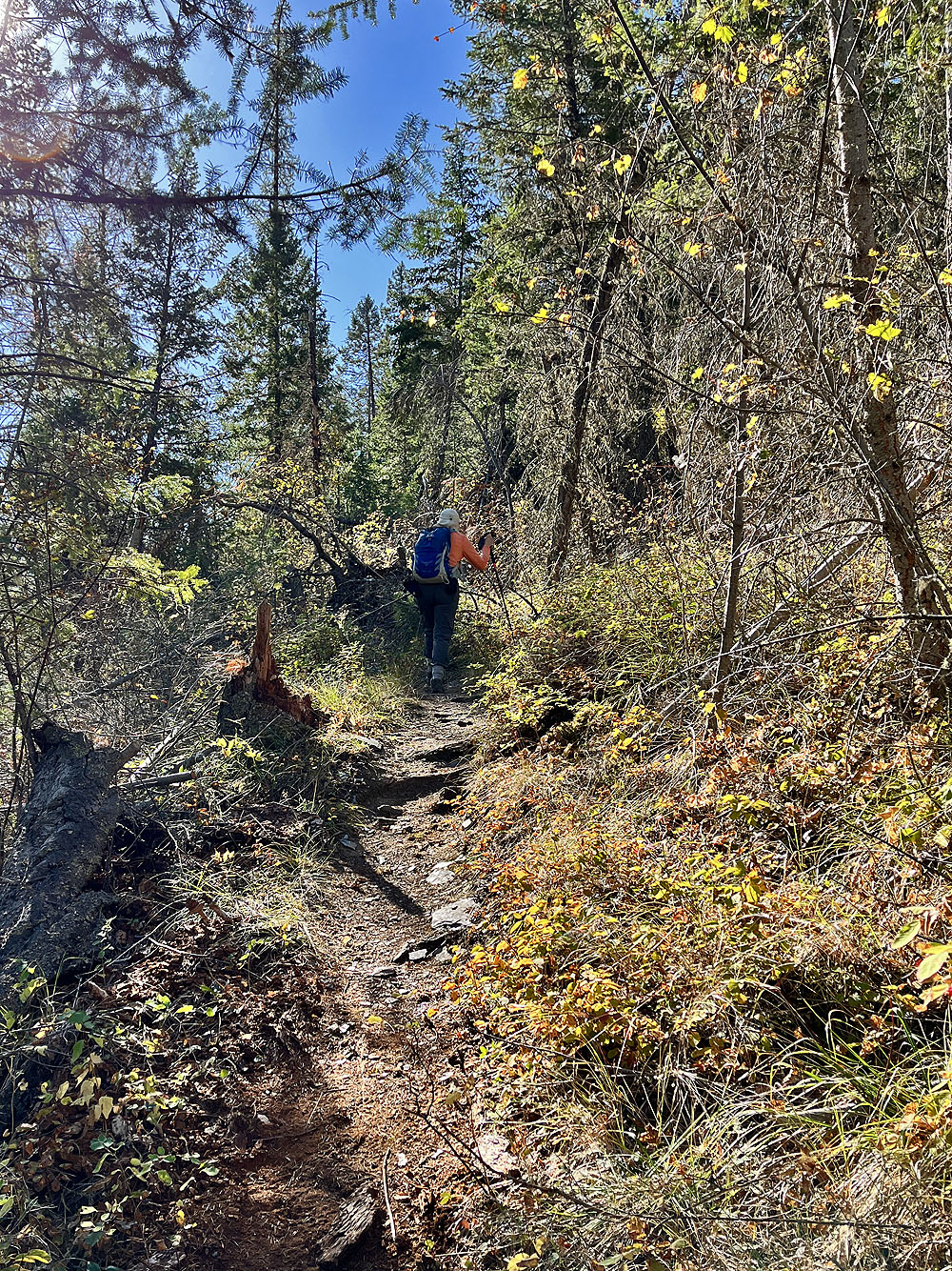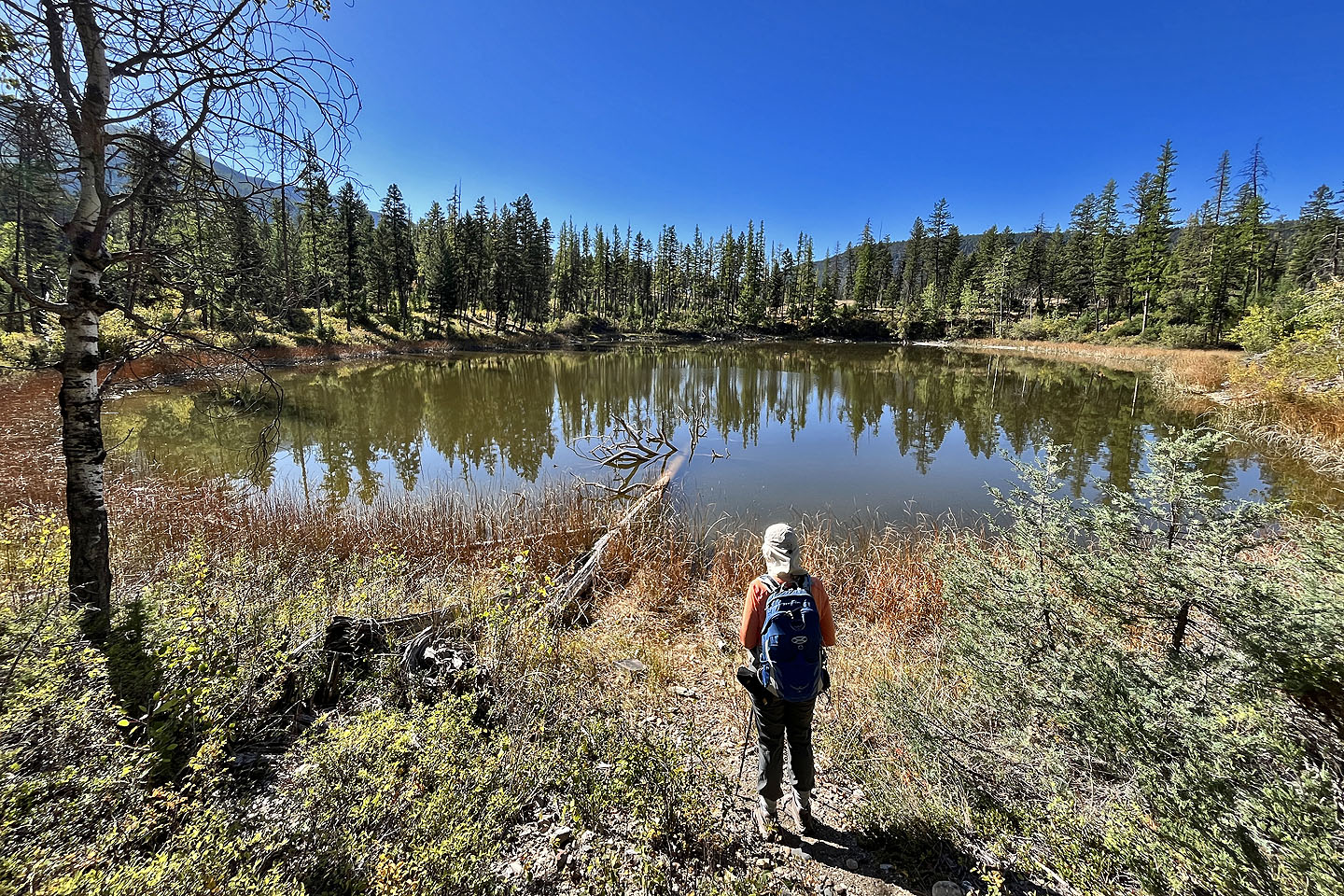 Dinah and I drove an hour north of Cranbrook to Premier Lake Provincial Park and parked at the south end of the lake. We wandered through the campsite to the Yankee-Canuck Loop trailhead. After climbing through a forest, the trail reaches the edge of a rolling expanse of meadow with scattered trees. We took the left fork to Turtle Lake. Unfortunately, we didn't see any turtles.