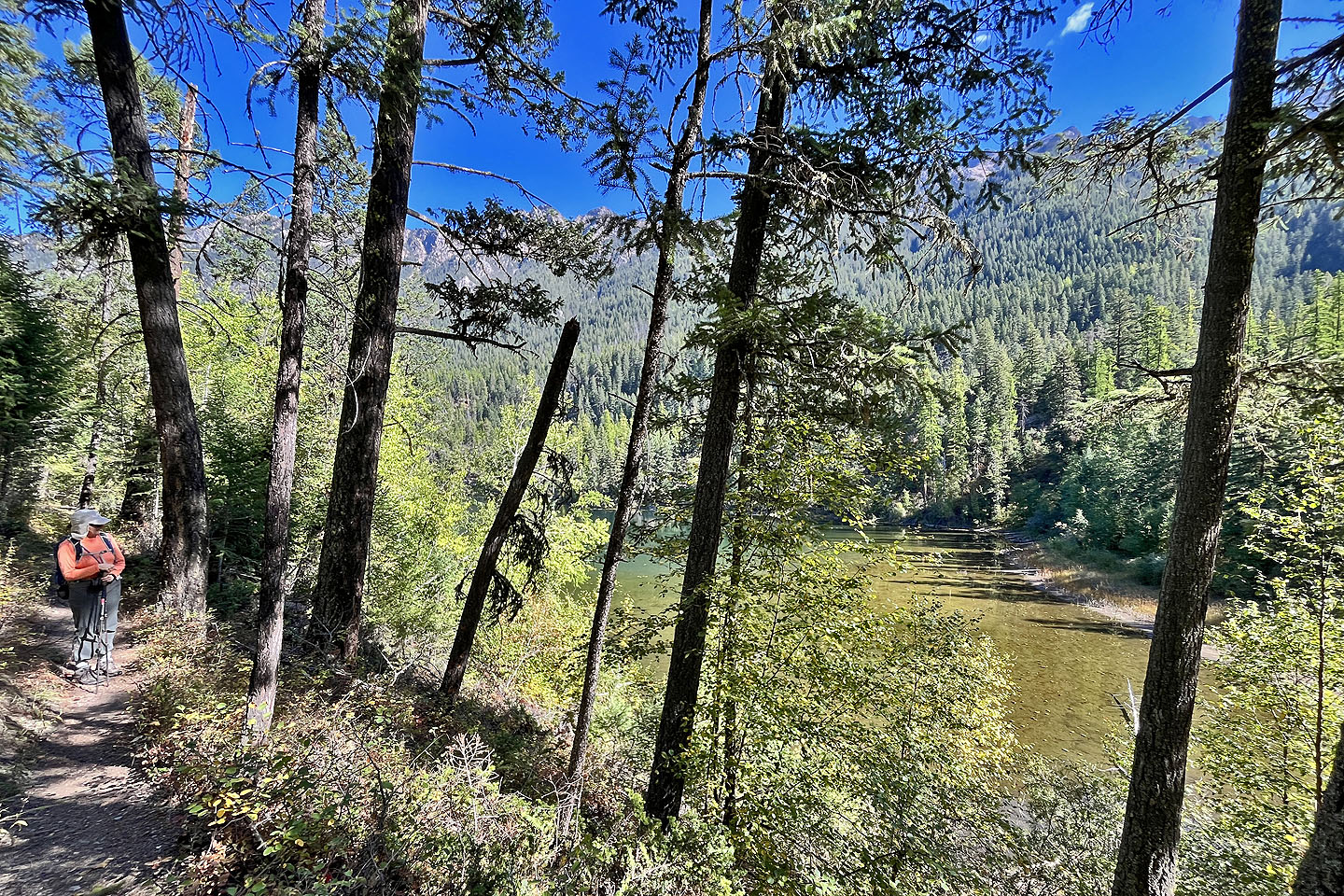 Dinah and I, usually not keen on mountain lake hikes, were drawn to the Yankee Lake – Canuck Lake Loop, a 7 km trip. Unlike most lake trails, this one runs through meadows as well as forests. But the highlight was the turtles at Turtle Lake.