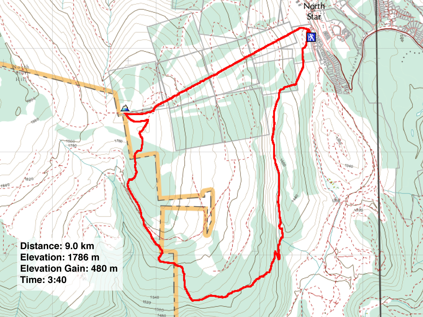 We passed several people coming down. One hiker explained that the trail was the site of an old T-bar lift. He added that a couple in their eighties go up North Star Hill “every day” during the hiking season.