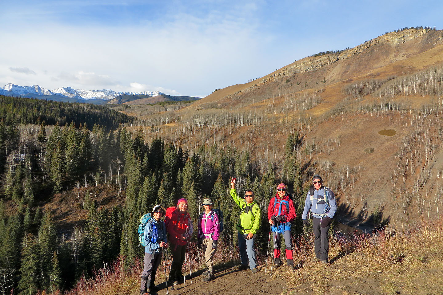 On a mild fall day, Dinah and I hiked a short loop on Foran Grade Ridge, a nicer trip than our 2009 winter hike when snow hid the trail, and we had to walk 1.5 km up the road because of a seasonally closed gate. This time, we were joined by Sonny, Zosia, Zora, Suzy, and Tomiji.
