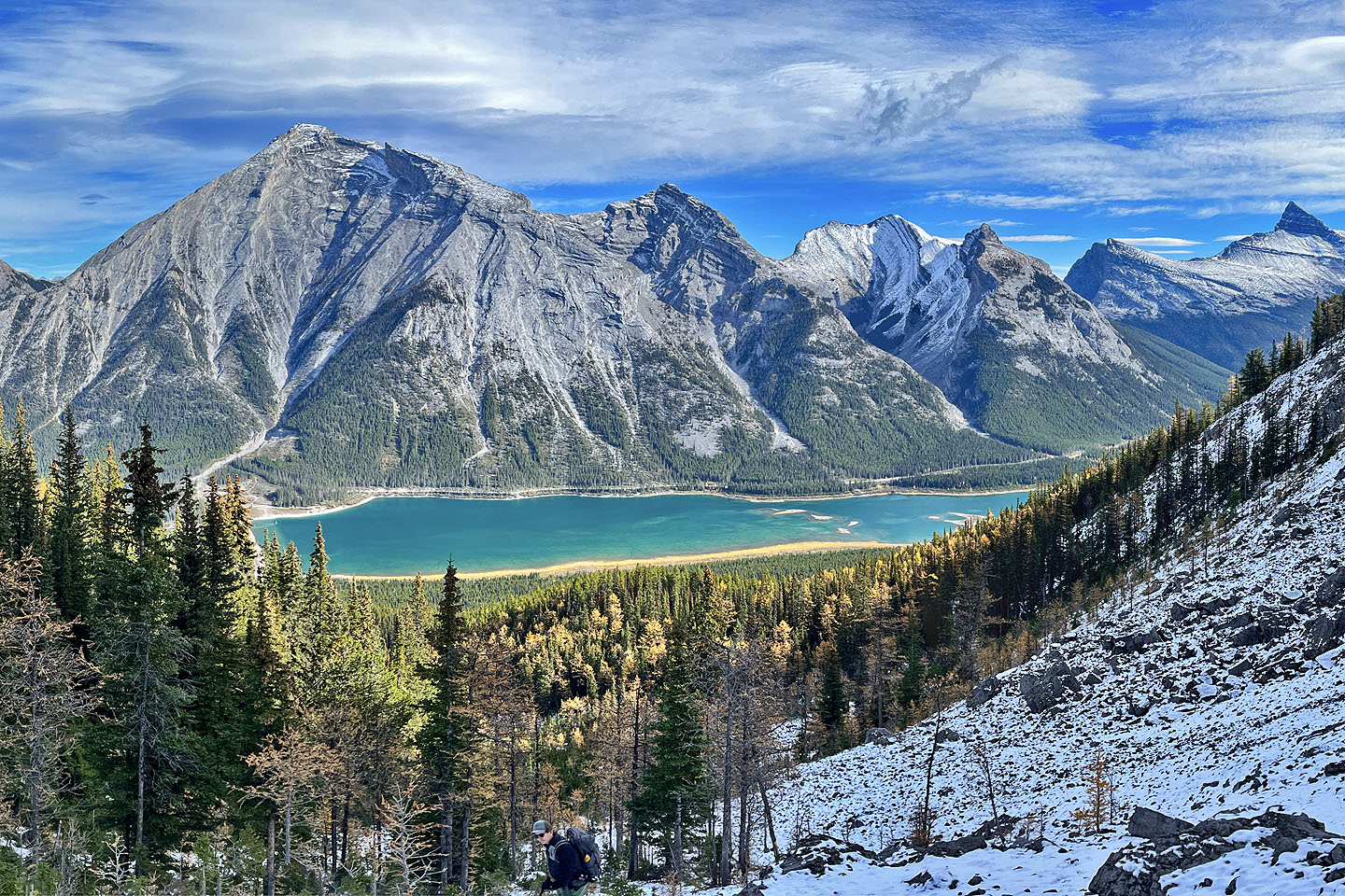 Looking back at Spray Lakes Reservoir after going