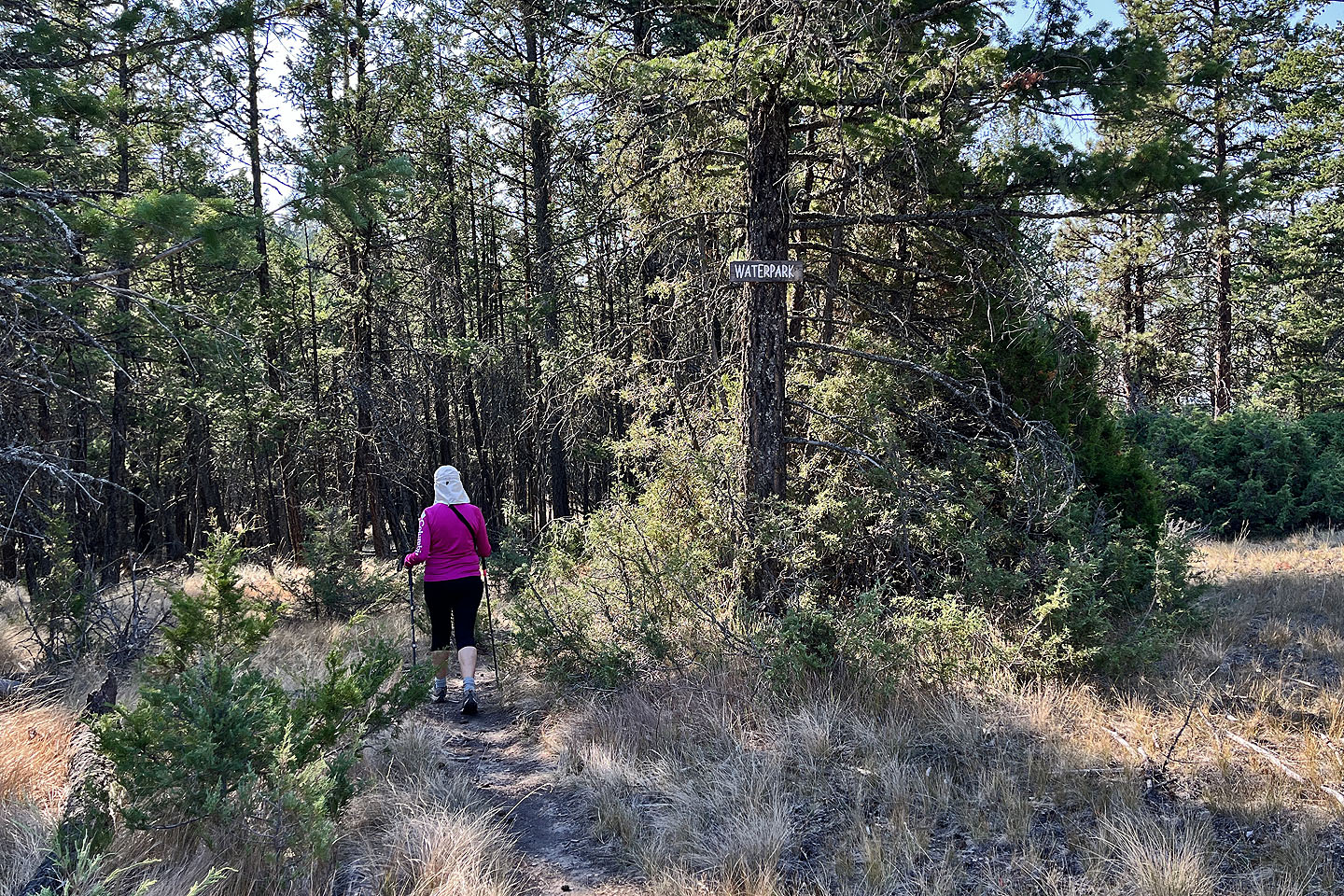 Rather than retracing our steps, we turned onto Waterpark Trail. The long, rolling trail meanders through the forest and offers scant views, but it was a refreshing change from the lookout trail. Waterpark Trail took us back to the parking lot.