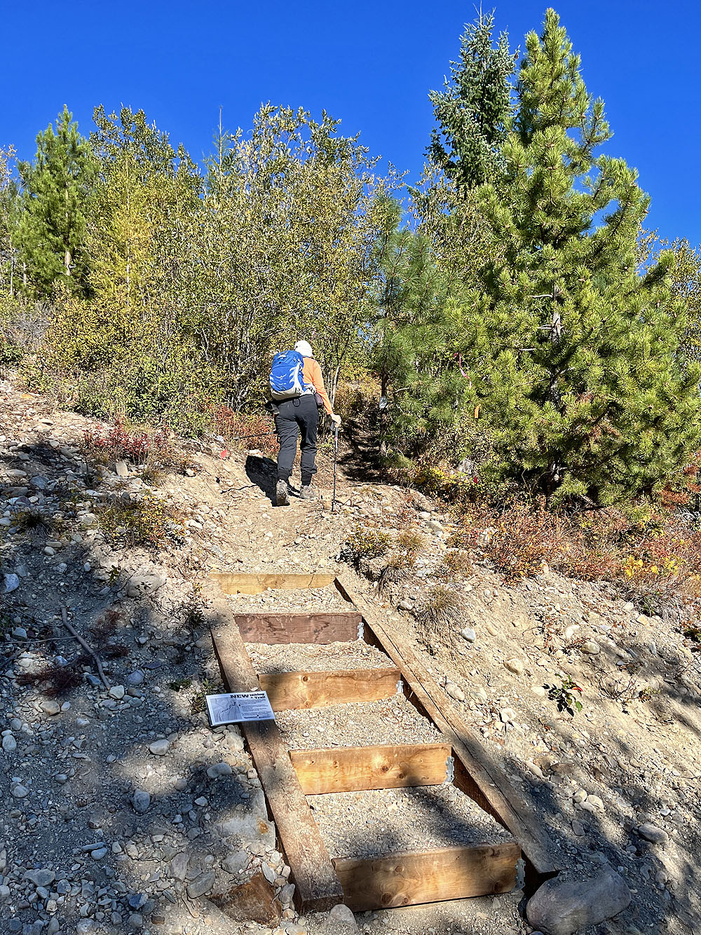 A sign descibes a new trail (mouse over)