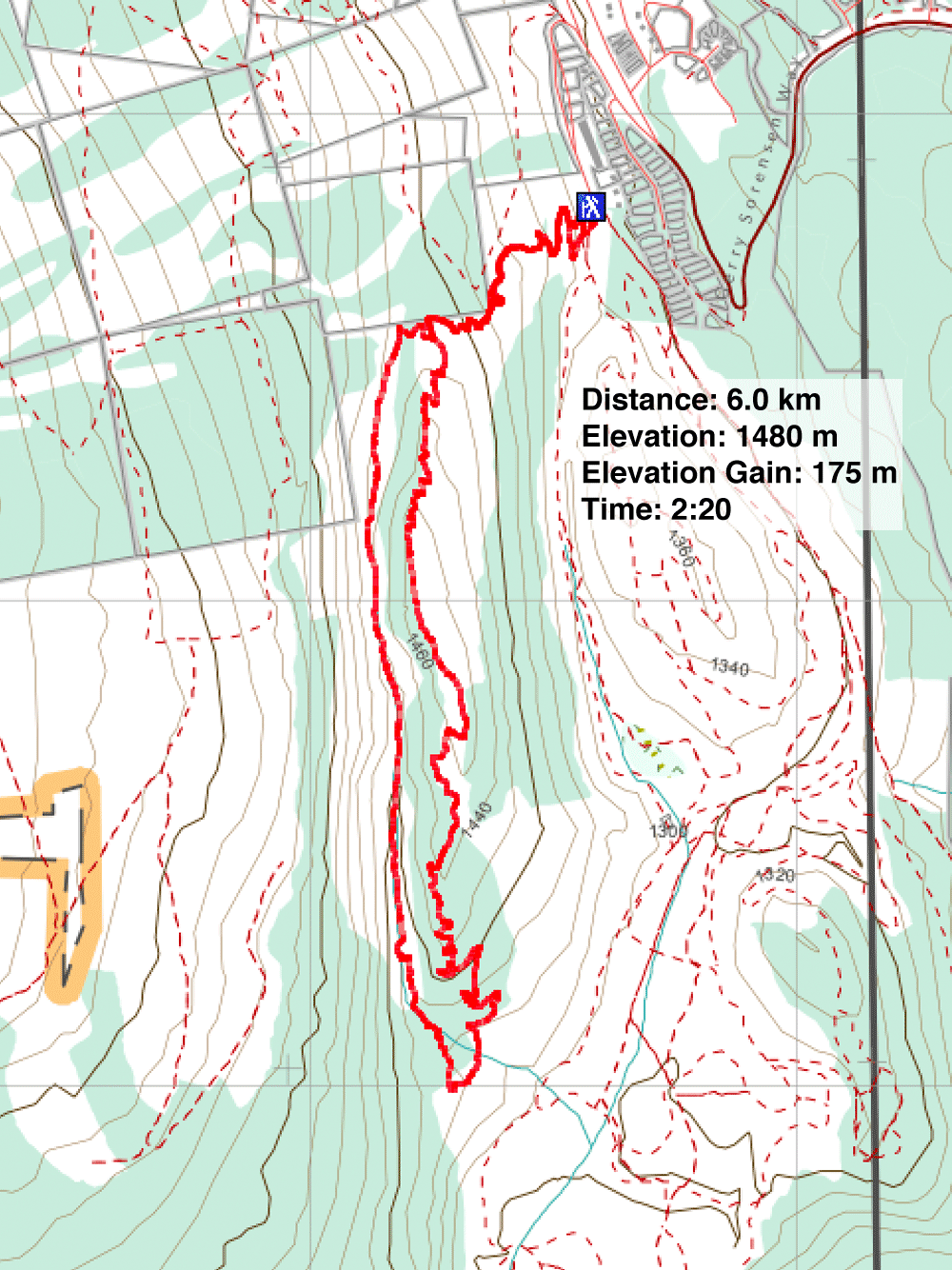 Looking up the slope on the right side