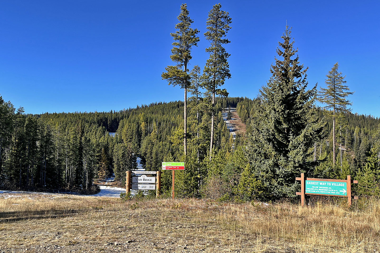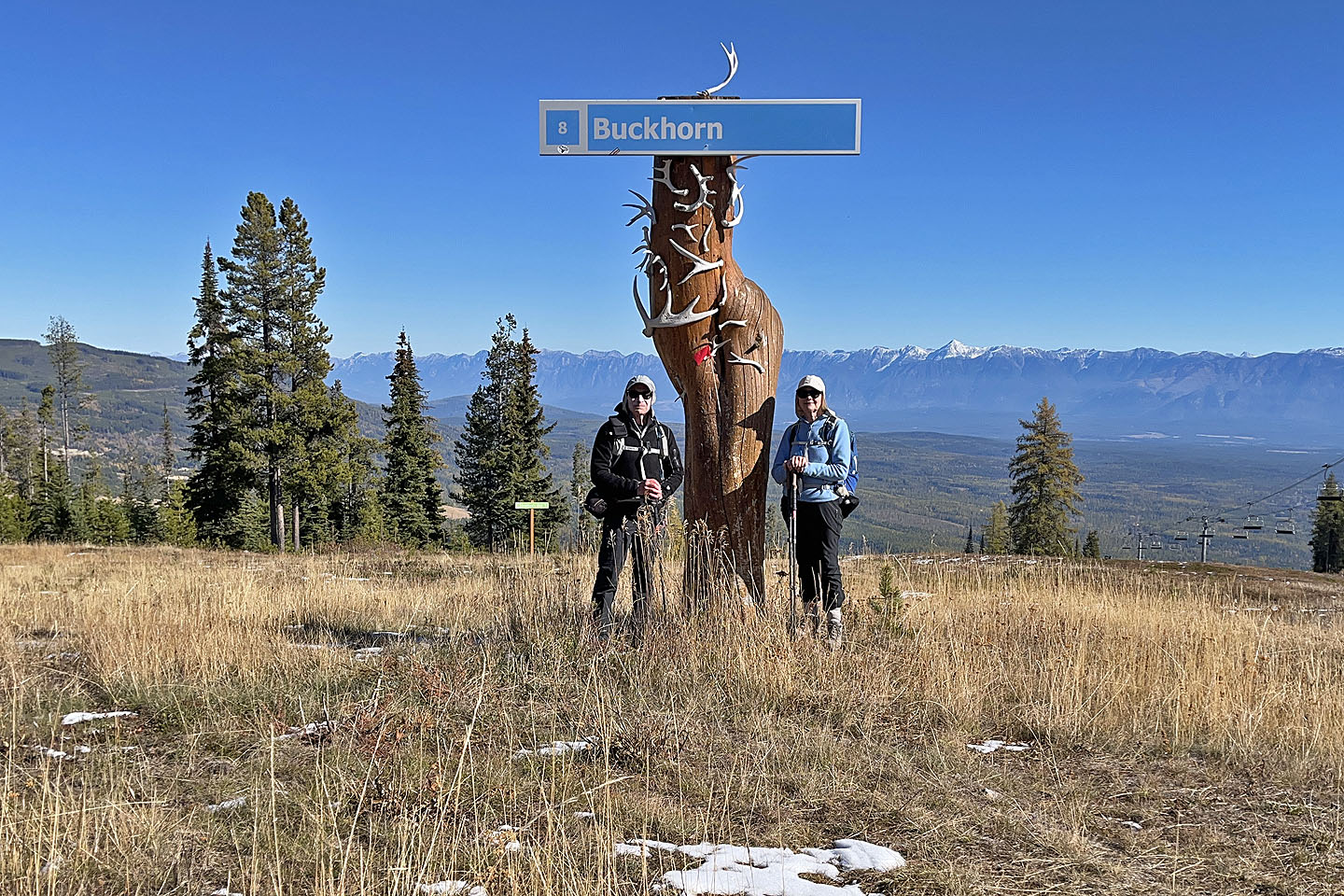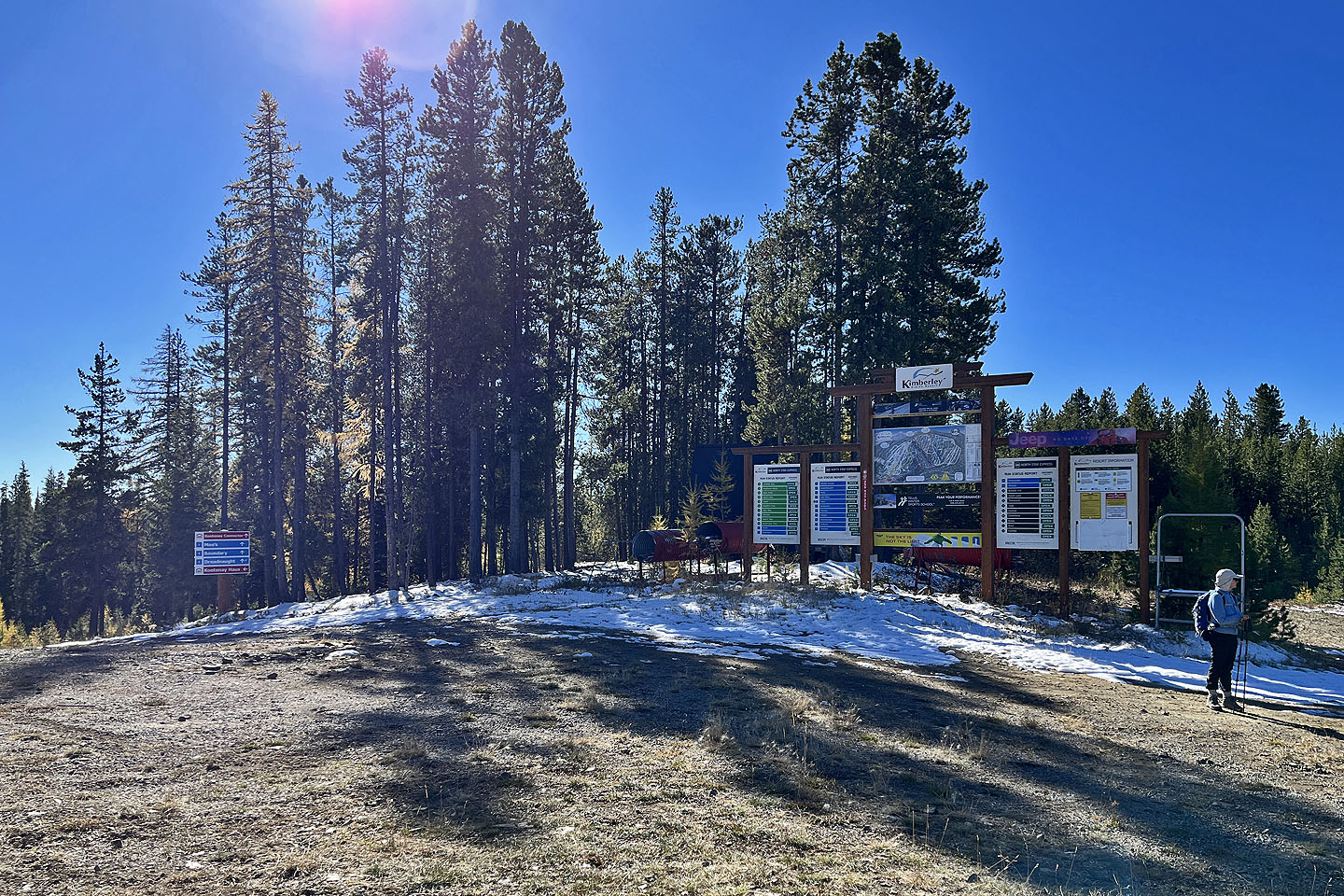The trail ends at the top of the old T-bar lift in a clearing. From there, we gazed back across the Rocky Mountain Trench to an impressive sight. Stretching across the east horizon over 30 kilometres away were the Rockies.
