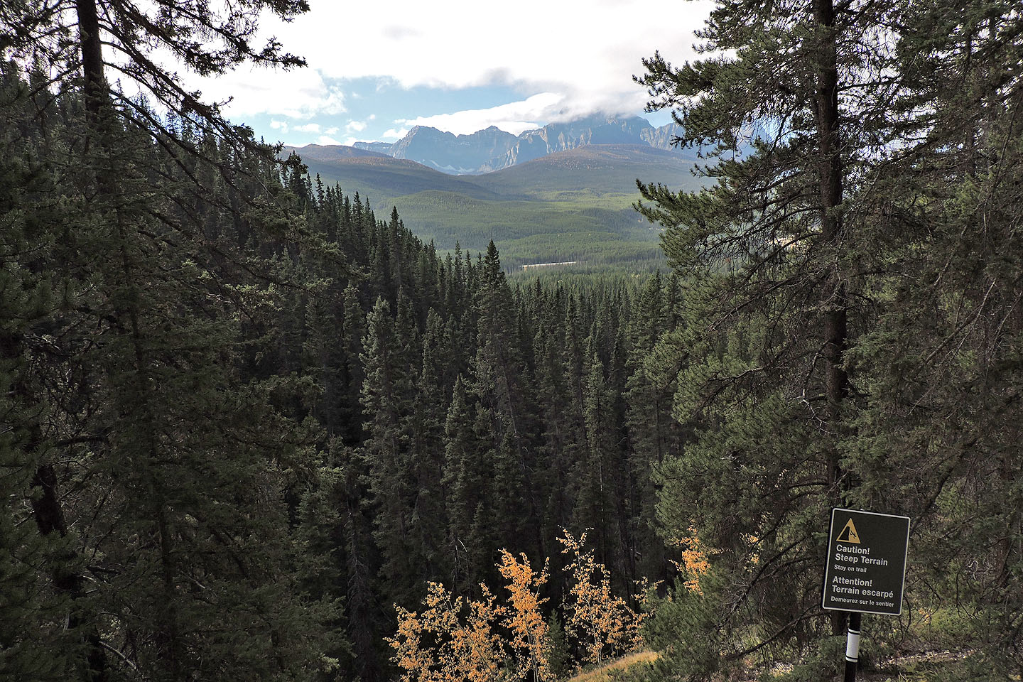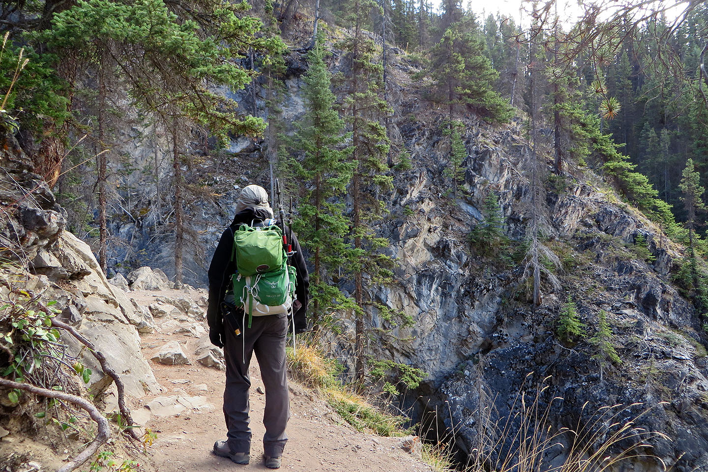 We had plans to do a hike on Highway 1A only to discover the road was close due to Covid-19. Unfortunately we had no backup plan. So Dinah and I parked at parking at the campground, and started up the trail for Rockbound Lake. We decided to see Silverton Falls. The entire hike is only 2.3 km with 80 m elevation gain. It's worth the slight effort, but it's not likely sometime one would consider en route to the lake or to the peaks above the lake, like Helena Ridge. Anyone going to the lake and beyond would be underwhelmed. It wasn't even enough exercise for us, so we hiked partway to the lake before turning around.