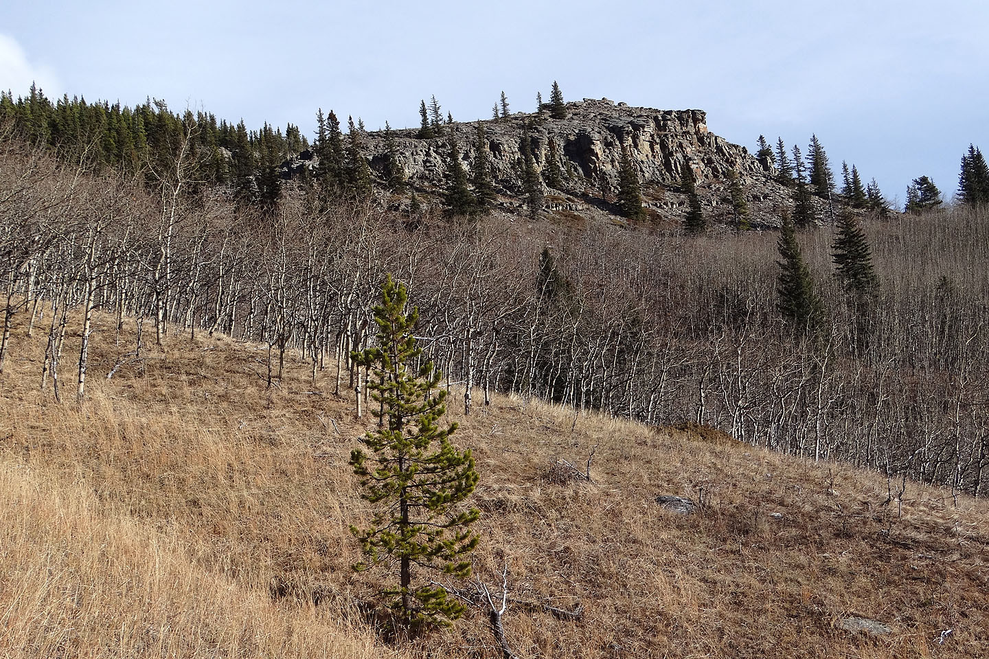 Having hiked up the west slope using the route described in the Kananaskis Country Trail Guide, I knew what to expect. So for the sake of novelty, I tinkered with the Teskey approach: I would ascend the north end of the mountain. This would both shorten the distance to the mountain and lengthen the ridgewalk.