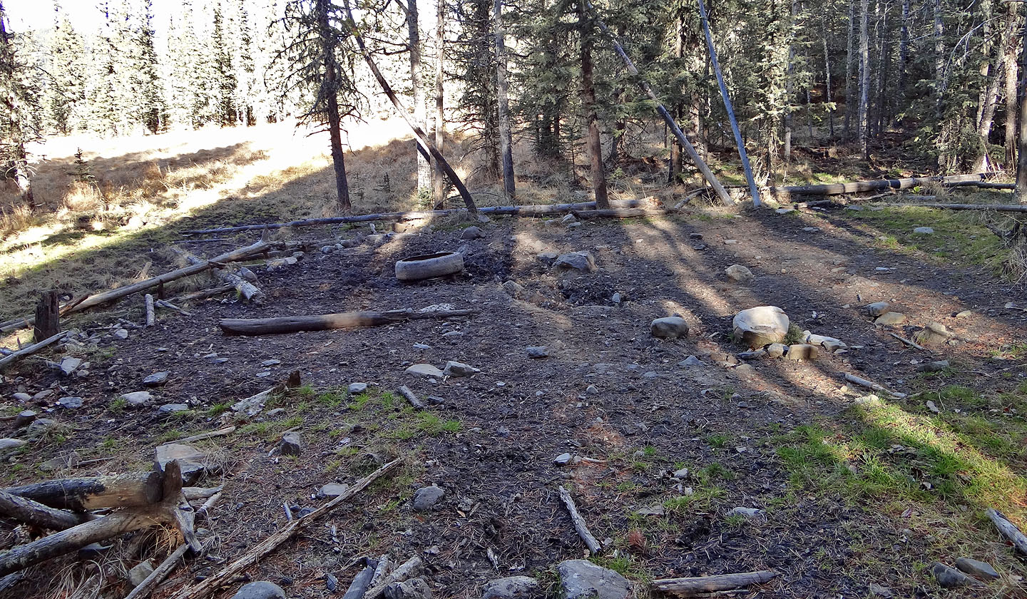 The trail begins 50 m northeast this campsite, through the trees, although you can skirt the