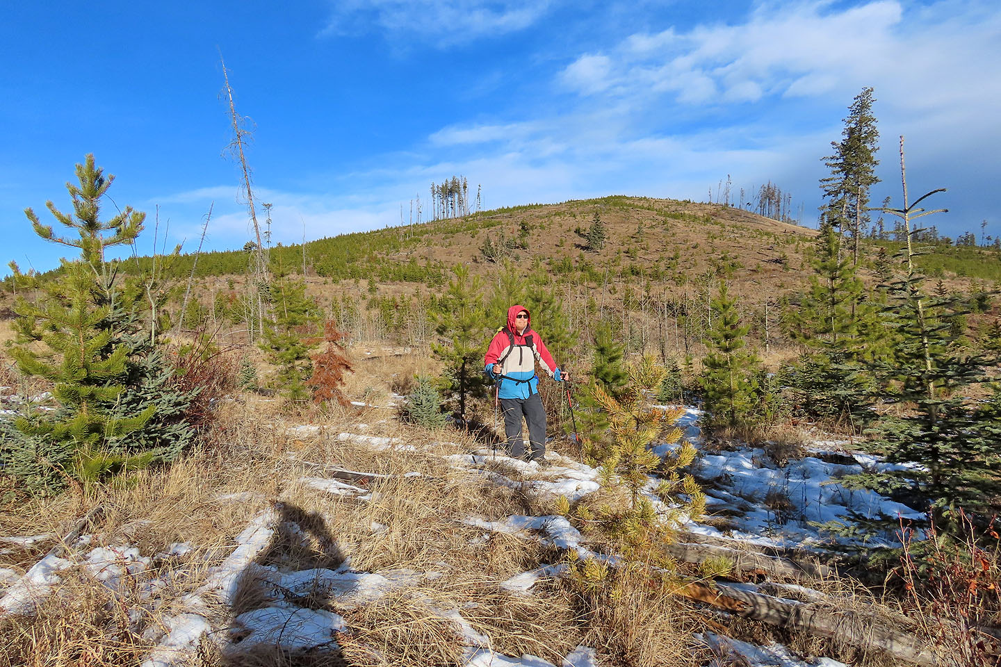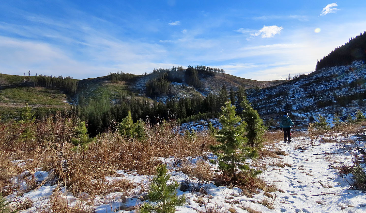 Sonny and Zosia invited Dinah and me to hike three low hills east of Mount Barwell. These pleasant, little bumps are within easy reach of roads and trails. They offer plenty of views as logging had levelled most of the area, and young trees had yet to re-establish a forest.