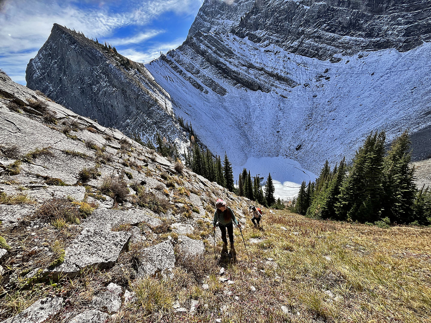 talus slope, we came down the ridge. We stayed left of the gully but eventually dropped into it. When it became