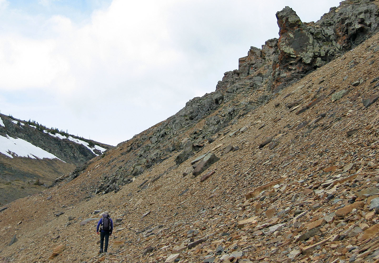 Prairie Bluff is an easy scramble that enjoys a long climbing season and colourful scenery. Dinah and I started at the Victoria Peak trailhead and walked up the road to a side trail. We had no trouble following the trail to the summit. Instead of returning the same way, we went offtrail and came down the southeast ridge. Looking back, it makes more sense to do this trip in reverse, scrambling up the ridge and walking back on the road.