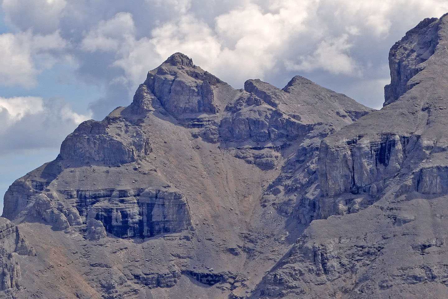 A close-up of Howard Douglas shows the extensive scree ascent