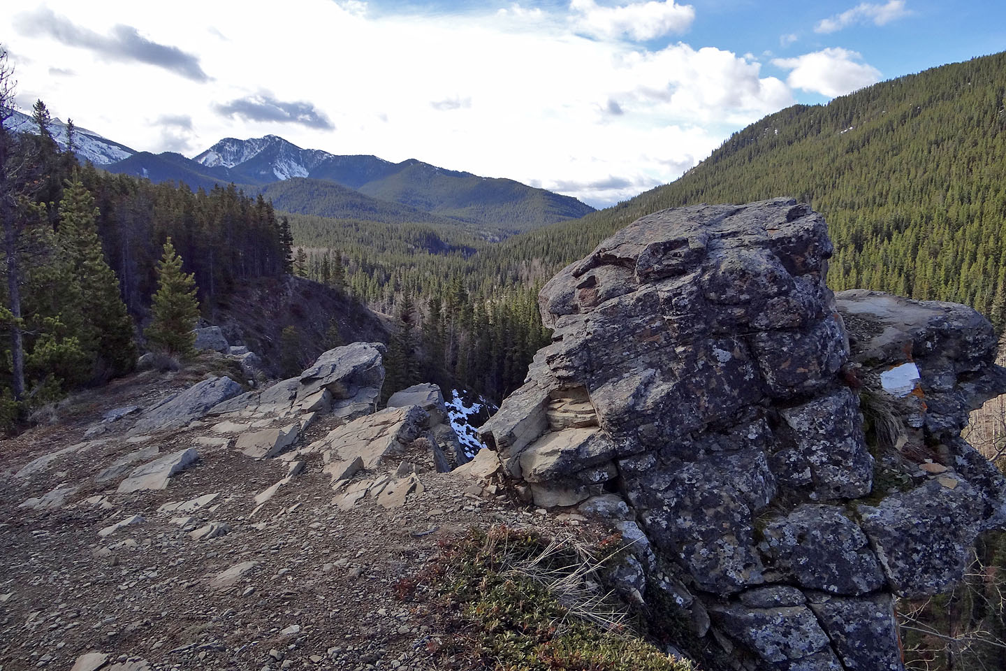 I used the same approach that I later used for Lightning Peak: an exploration road. I walked up the road until I reached the south end of the ridge and then hiked up the ridge. Then I headed north, traversing most of the ridge, before descending an open slope on the left. At the bottom of the slope, I bushwhacked to Highway 22. I followed the road to my car.