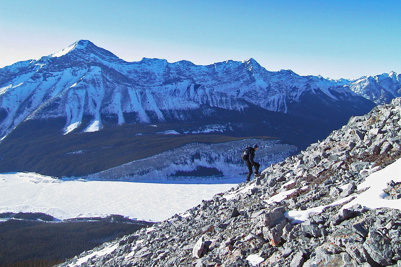 Lying in the shadow of Mount Lougheed is an unnamed outlier that I call "Little Lougheed." It enjoys a long season and delightful scrambling through a boulder field.