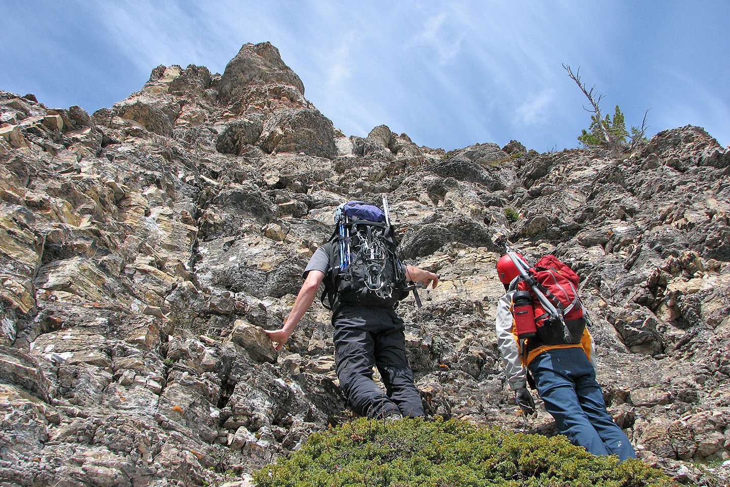 Jason and Raff (in red, upper right) heading to the first pinnacle