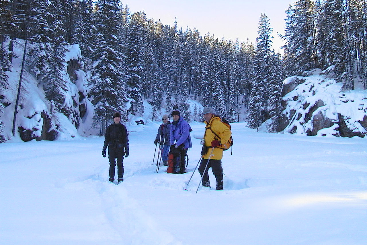 So for our snowshoe trip, we parked on HWY 93 and headed west. Guided by GPS, we had no trouble finding Lost Lake. We had lunch on the west shore before looking south for nearby Missing Lake. We found Missing Lake and headed back, making a loop trip.
