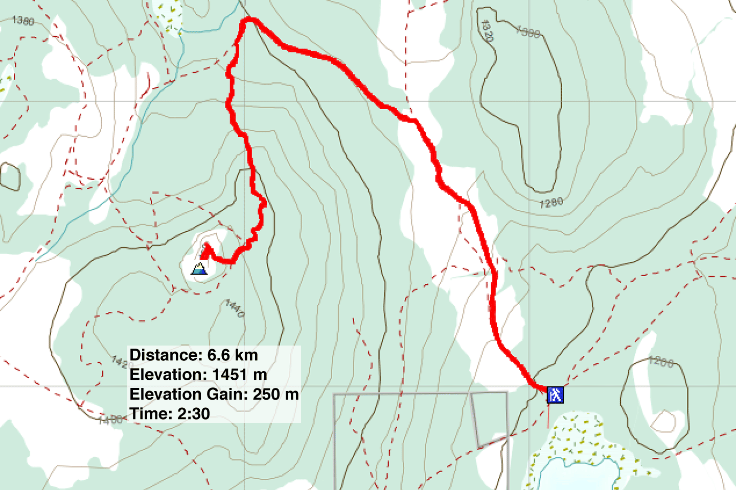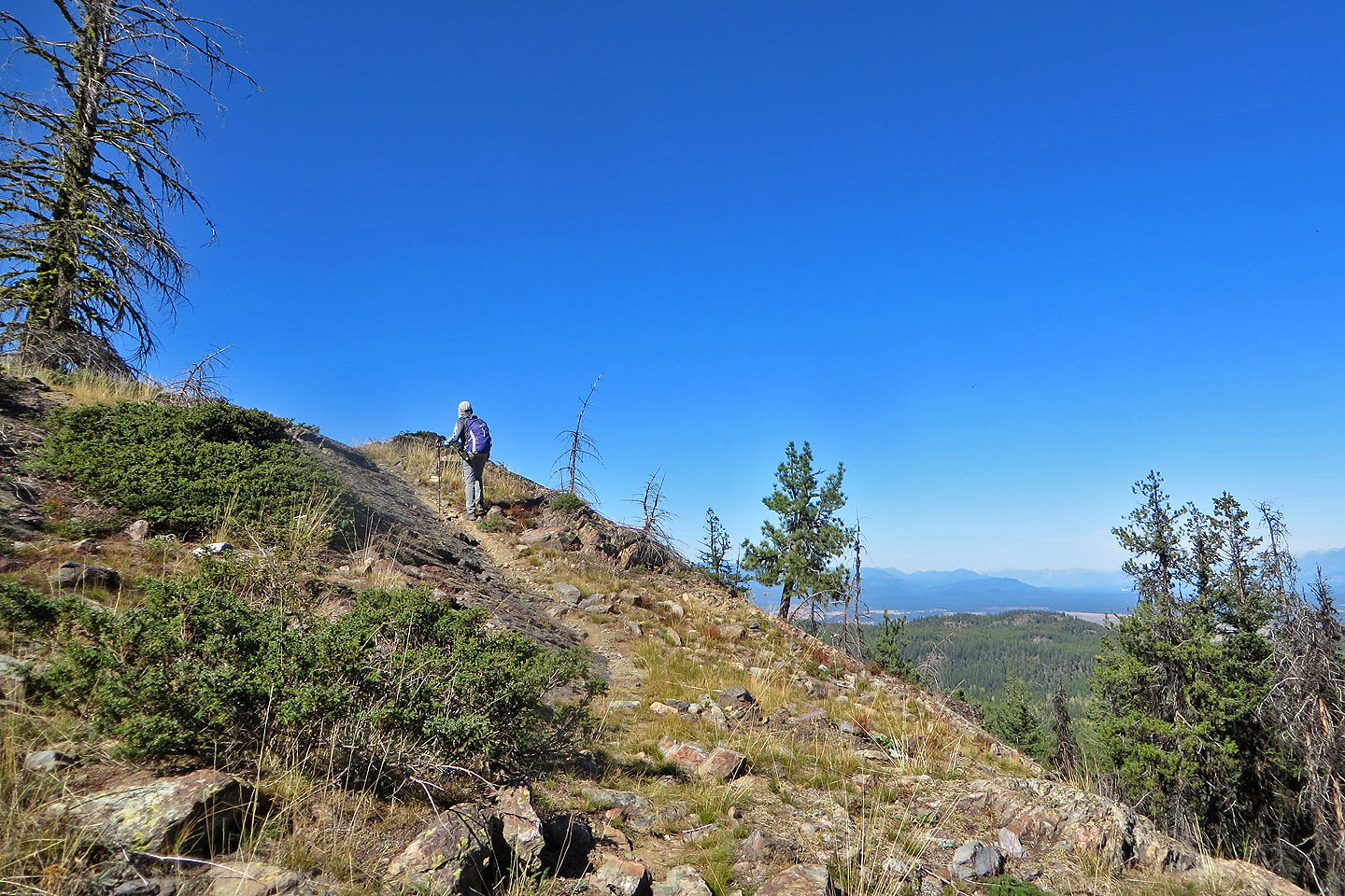 Ten minutes northwest of Cranbrook is a trail that AllTrails awkwardly calls New Lake 360 Viewpoint (I’ve shortened it to New Lake Viewpoint). It’s a short hike up an exploration road to an open summit. Three months ago, Dinah and I aborted the hike at the trailhead when a wildfire crew arrived to manage a fire near the summit. This time, there was no wildfire nearby.